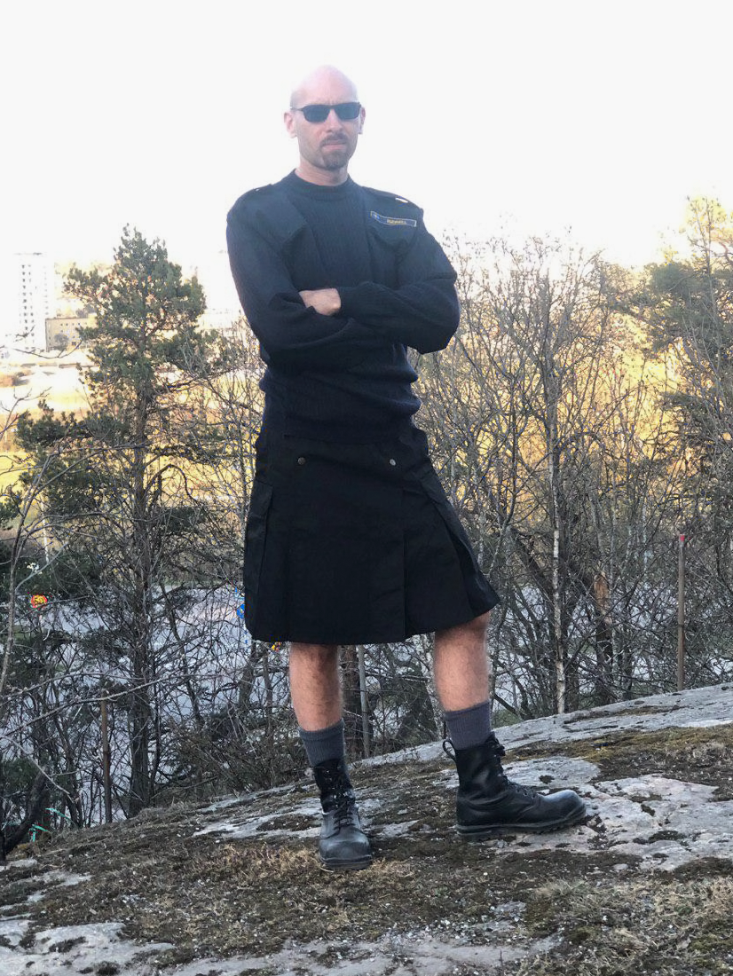 Конечно же, я его примерил, посмотрел на себя в зеркало, ощущения были озорные. Правда, в тот день я на улицу в нем не пошел — был декабрь, и я решил подождать лета. Сначала меня приколола сама идея. А потом я рассказал товарищам из частей национальной гвардии, а они мне ответили: «Да, у меня тоже есть килт», «Да, у меня два», «Да, в них так классно стрелять летом». И пошло-поехало.