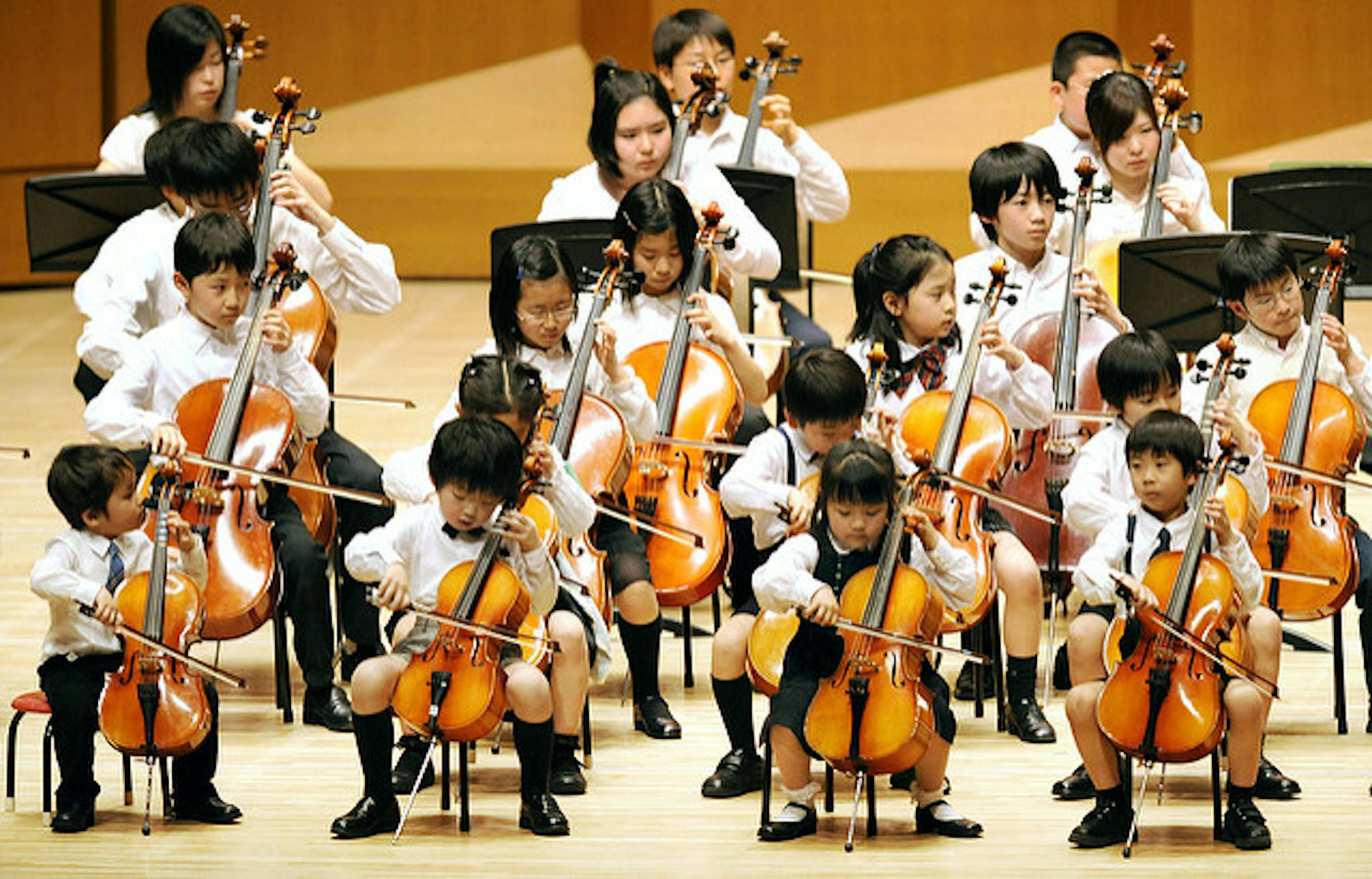 На первом же уроке Сузуки сложил смычки и скрипки вместе с игрушками и предложил малышне поиграть с ними. Сам же они время от времени брал скрипку, подносил к ней смычок и извлекал одну ноту.